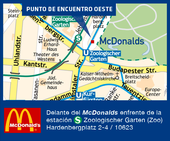 Delante del McDonald's en la entrada principal de la estación de S+U Zoologischer Garten, Berlín, (ver mapa)