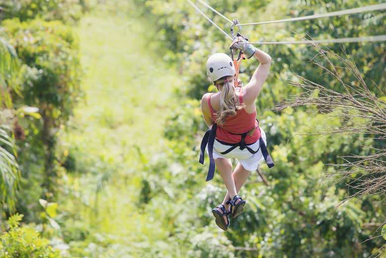 Las tirolinas presentan distintos niveles de dificultad. Incluso, en algunas os deslizaréis tumbados mientras vivís una experiencia que sin duda jamás olvidaréis.