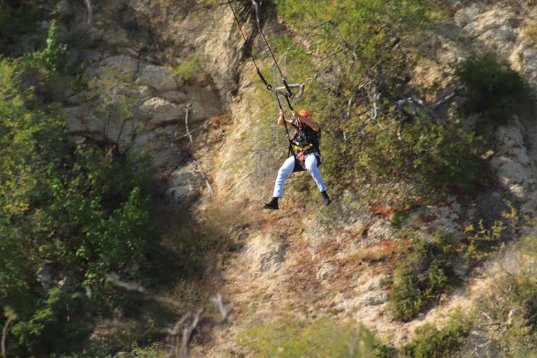 Entre una tirolina y otra caminaréis por senderos rocosos y escarpados. Además, estaréis acompañados en todo momento por monitores cualificados, por lo que no tendréis que preocuparos de nada. ¡Tan solo dejaos llevar por el ritmo vertiginoso de las tirolinas!