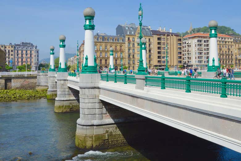 Junto al río Urumea se encuentra el edificio Kursaal, obra de Rafael Moneo. Llegaremos al paseo de la Concha, donde se halla la famosa barandilla blanca y la playa de la Concha, reconocida como una de las mejores playas urbanas de Europa. Hablaremos sobre las celebridades que han veraneado en su arena.