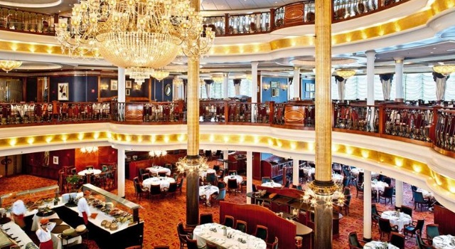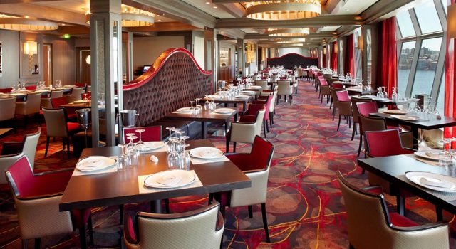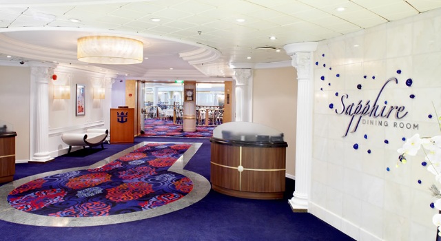 La oferta gastronómica del Vogayer of the Seas es amplia. Además de poder comer y cenar en el restaurante principal, se puede disfrutar de más opciones gratuitas que incluyen Windjammer Café, Jade Sushi y fusión culinaria asiática, Café Promenade para degustar café, pasteles/snacks y servicio a la habitación. También cuenta con el restaurante de especialidades Chops Grille y el restaurante italiano Portofino, donde por un bajo cobro fijo puedes elegir cualquier artículo del menú desde aperitivos hasta el postre. Además se pueden elegir entre comidas informales y snacks en Johnny Rockets y la heladería Ben & Jerry's.