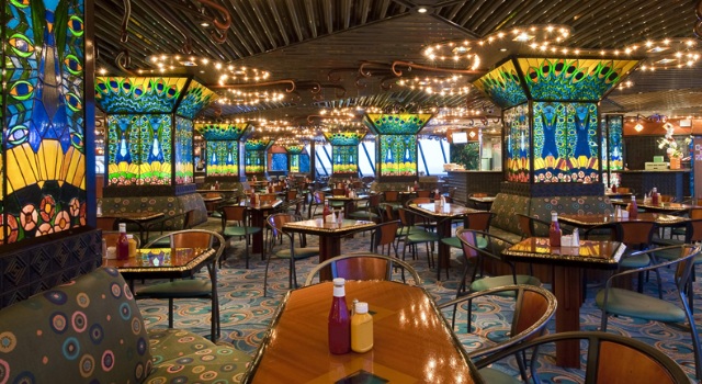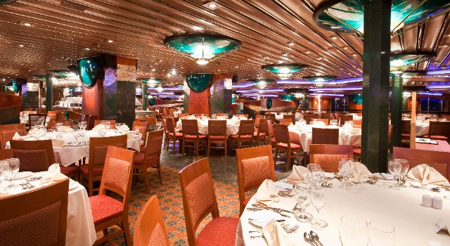 En cuanto a gastronomía, ofrece dos comedores principales, el "Tiffany's Bar & Grill" donde se sirven pizzas, hamburguesas, ensaladas y postres o el restaurante "Seaview Bistro" a la carta y formal, con cargo aparte.