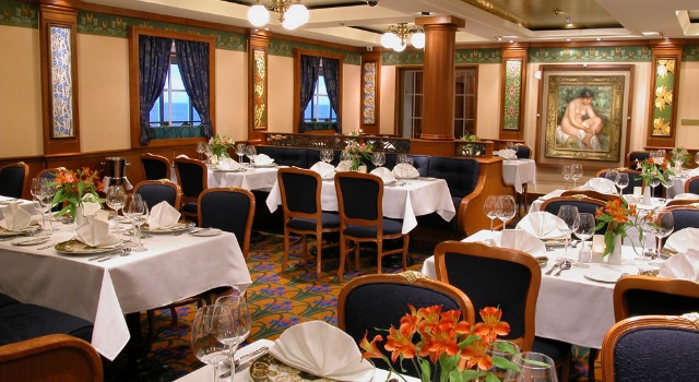 El barco ofrece a sus pasajeros una colección de arte en "Le Bistro", con pinturas originales de Matisse, Monet, Renoir y Van Gogh.