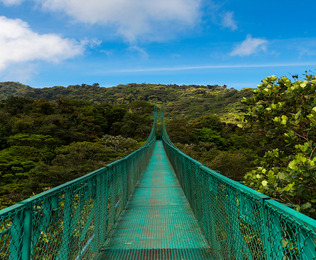 - Luego haga el check out y reúnase con su guía a las 7:30 para dirigirse hacia Monteverde, donde llegará aproximadamente a las 11:30. Admire los paisajes cambiantes mientras conduce desde la selva tropical hasta los bosques nubosos y alcanza una altitud de 1200 metros sobre el nivel del mar. Ubicado en la provincia de Puntarenas, Monteverde es un lugar de bosques nubosos y neblina, plantaciones de café, monos y gente amigable. El pueblo de Santa Elena es pequeño y pintoresco, lleno de atractivos restaurantes y tiendas de artesanías, mientras que la selva tropical cercana alberga una notable cantidad de biodiversidad.