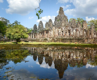 - Explorará la Puerta Sur de Angkor Thom, conocida como Angkor Grande, ciudad real amurallada de 3 km2, y fue la última capital del Imperio Angkoriano. El famoso Templo de Bayon fue un embrollo arquitectónico, porque se construyó de forma un tanto fragmentaria durante más de un siglo. Terrace of the Elephants es una impresionante pared de terraza de 300 metros de largo y 300 m de largo, adornada con elefantes tallados y gradual que se extiende por el corazón de Angkor Thom frente a Baphuon - enorme templo de montaña en el corazón de Angkor Thom, Palacio Real Área y Phimeanakas - impresionante pirámide de rito y arenisca. La Terraza del Rey Leproso se encuentra en el extremo norte de la Terraza de los Elefantes, una pared de doble terraza con una zona muy tallada, demonios y otros seres mitológicos. Seguimos visitando el templo de Ta Prohm, que es una maravillosa combinación de genio humano y belleza natural con los árboles gigantes han crecido aquí durante siglos.